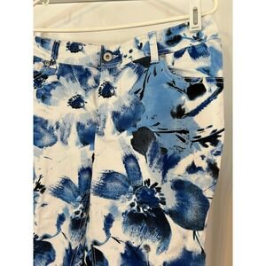 Chicos Floral Print Cropped Jeans Womens Size 1.5 Blue White Stretch Denim