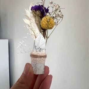 Handmade Crystal Flower Bouquet wrapped in soft lace and twine. Includes delicate accent flowers and polished crystal points, creating a beautiful piece of spiritual décor.