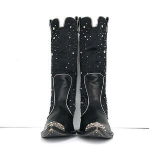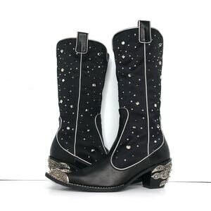Giuseppe Zanotti Crystals Studded Pull On Western Cowgirl Heeled Boots 37.5