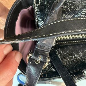Spacious and functional with a structured shape. Patent leather shows light cosmetic wear from normal use; interior is clean with no stains or odors.