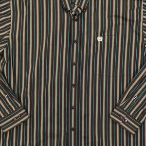 Cinch Shirt Mens Large Brown Blue Striped Western Button Front Cotton Casual
