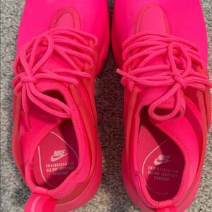 Bold hot pink Nike shoes. Ideal for running and everyday style.