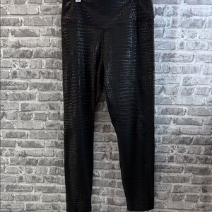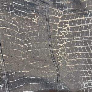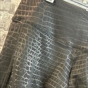 Stylish black pants with a unique pattern. Ideal for formal workouts or all day. Used but in good condition. Size medium pockets on the side. Not full length