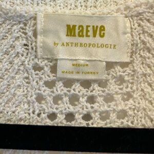 Chic ivory cardigan by Maeve. Open-knit pattern with button front. Ideal for layering.
