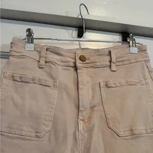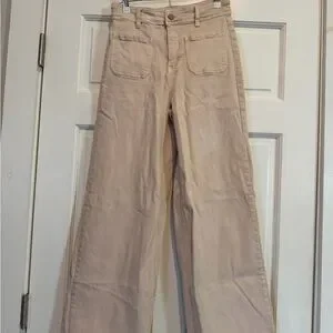 OAT Tan Beige High Waisted Wide-Leg Pants with Cute Front Pockets
