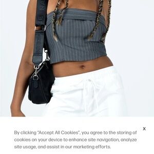 Princess Polly Charcoal pinstripe strapless crop top size 2. Like new! Love the suiting fabric. Zip up back. Sexy and fun.