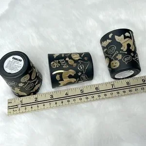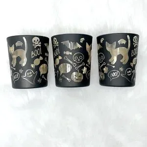 Brand New Set of 3! Add a touch of mystical charm to your home with these Boo Cat black and gold glass votive candle holders. Perfect for tealights, these feature a sleek gothic cat design that glows beautifully when lit.