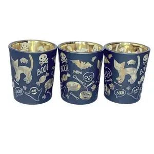 Boo Cat Gothic Black & Gold Votive Candle Holder (Set of 3) Kitty Tealight Glass