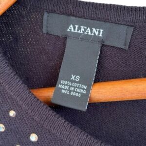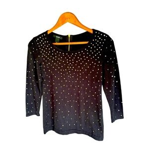 Alfani Black Sweater with Gold Studs Size XS Round Neck Long Sleeve Cotton