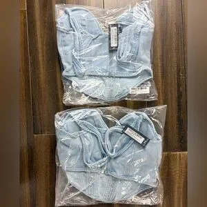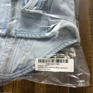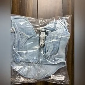 NWT PLT Light Blue Wash Dip Hem Bust Cup Underwire Denim Corset Top y2k