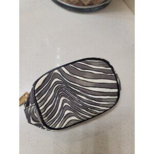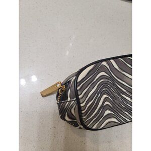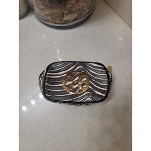 TORY BURCH Cosmetic Toiletry Bag Case Patent Small Pouch Zip Round Logo