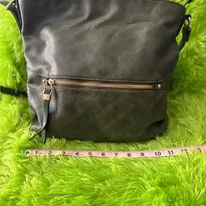This elegant green-ish leather shoulder bag is perfect for any occasion. Its sleek design and high-quality material make it a must-have accessory. The bag features a convenient front zipper pocket for easy access to essentials.