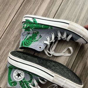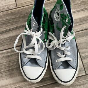 Stylish and comfortable, these Converse high-top sneakers are perfect for kids. Featuring a cool blue and vibrant green design, they offer both durability and flair for everyday adventures.