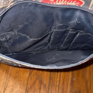 Chic Vera Bradley crossbody with floral pattern. Blue and red hues. Ideal for daily wear. Like new. 11” wide at the base, 11” top to bottom.