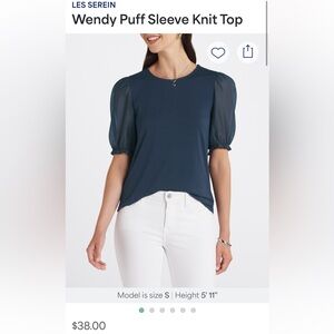 Wendy Navy Puff Sleeve Knit Top Size M