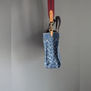 Coach mini denim field tote CA580 Signature denim and refined calf leather.