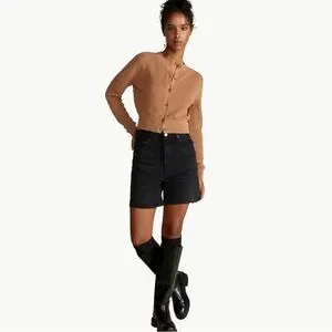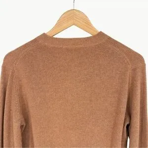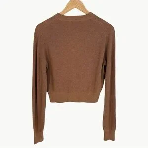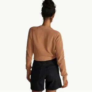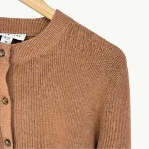 NWT Amour Vert Lily Rib-Knit Cropped Cardigan Sweater | Sz Medium | Camel Tan