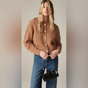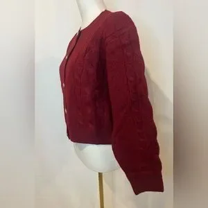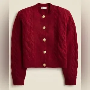 J.Crew Cable-knit cardigan sweater in burgundy