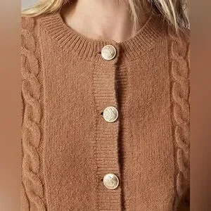 This cozy style comes with chunky cable-knit details down the sides and sleeves, plus removable shoulder pads for a more structured look when you want it.