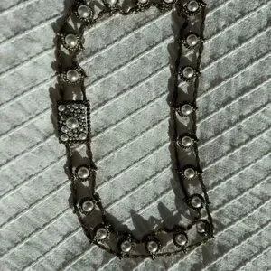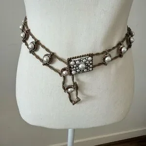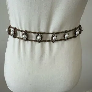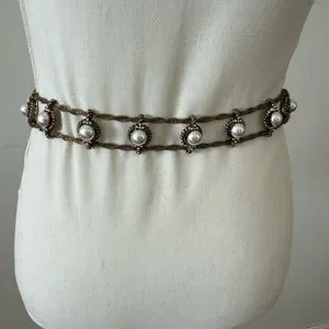 Stylish belt with bronze chain and pearl details. Perfect for adding elegance to any outfit.
