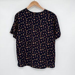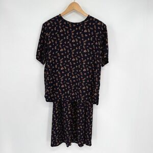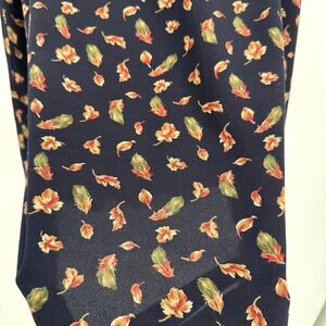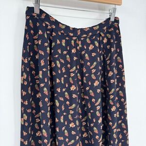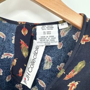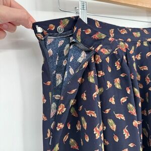 JH Collectibles Vtg Navy Blue Leaf Print Skirt/Top Set Women's Sz 14+16