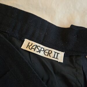 Kasper II Navy Dark Blue Wool Pencil Midi Skirt with Pockets