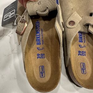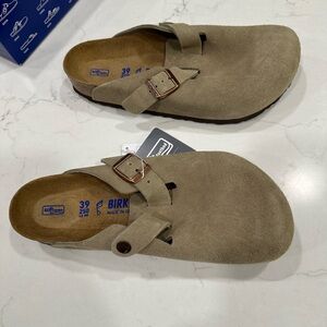 Beautiful size 39 clogs, regular fit, brand new, comes in box but box was not in perfect condition (shoes are). Received as gift, too late for returns!