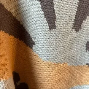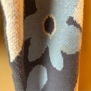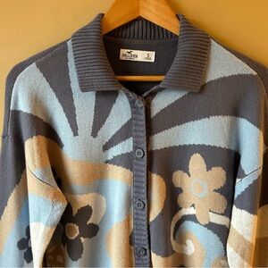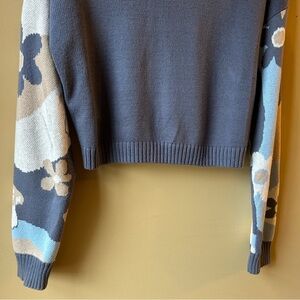 Hollister Cropped Mushroom Floral Sweater Size Small Blue Tan Retro Boho Hippie