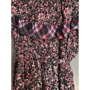 Free People Dress What About Love Maxi Size L Black Pink Floral Ruffle Belted