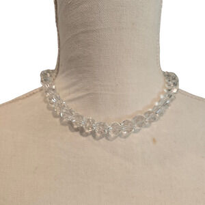 Necklace Vintage Crystal Beaded Clear Faceted 12mm Magnetic Closure 16" SKU2904