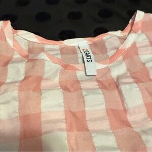 Pink & White Gingham Peplum Top - Adorable pink and white gingham check top. lightweight fabric with a peplum-style gathered waist and cuffed cap sleeves. Perfect for spring and summer! Would make an adorable Easter outfit - excellent condition. Size women’s medium.