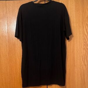 Classic black t- shirt dress with oversized short sleeves. Ideal for everyday wear. It is the most buttery soft thick material. Great quality and condition.
