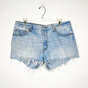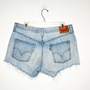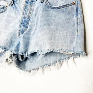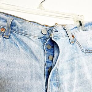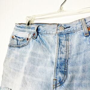 LEVI's 501 High Rise Raw Hem Rigid Denim Jeans Luxor Edge 32 Festival Music