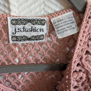 Vintage Pink Crochet Floral pearl Cardigan Sweater Cottage core Grandma Soft