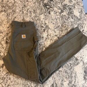 Carhartt double knee work pants olive green men's 33x34 reinforced *small hole*