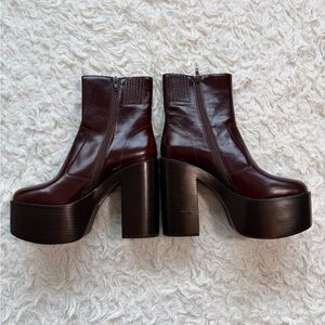 JEFFREY CAMPBELL Mexique Brown burgundy Leather Platform Boots US size 7.5
