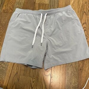 These gray athletic shorts offer a comfortable fit with their elastic waistband and adjustable drawstring. Ideal for workouts or casual outings, they provide ease of movement and a minimalist design.