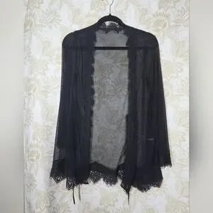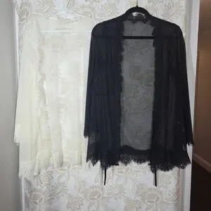Fredericks of Hollywood Set of 2 Open Front Robe Lingerie Sheer Lace Coverup S/M