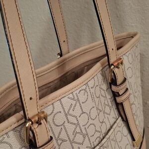 Calvin Klein Cream and Gold Monogram Tote