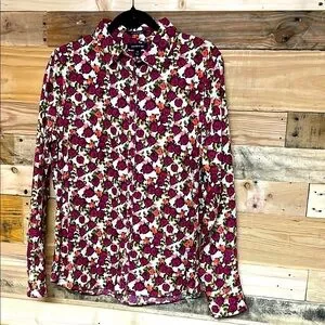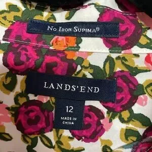 Lands' End size 12 Pink Floral Print No Iron Supima Button Down Shirt