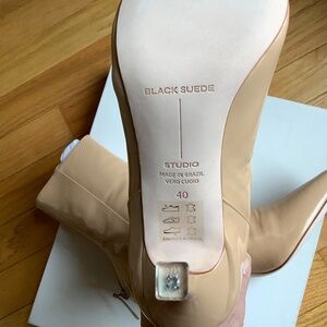Black Suede Studio Laura Bootie Patent Leather Porcini SZ EU40/US9.5