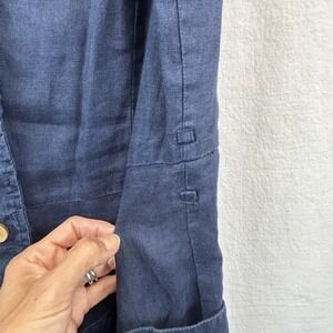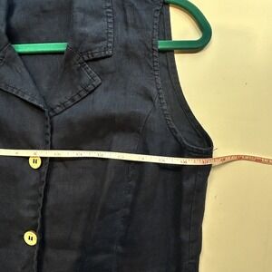 MNG Mango Navy Blue 100% Linen Shirt Dress Sleeveless Brown Button Up