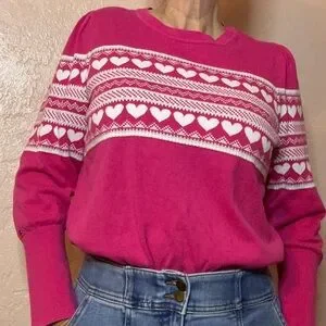 Vintage Tommy Hilfiger Heart Sweater Crew Neck Pink Sz Large