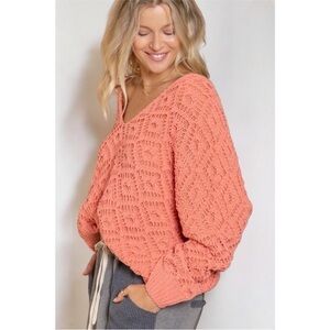 The Bright Side Chenille V Neck Honeycomb Sweater Oversized Semi-Cropped Size S