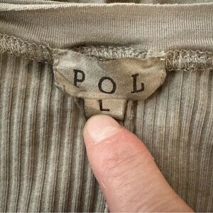 POL Mineral Wash Ribbed Long Sleeve V-Neck Top Size Large Bohemian Distressed