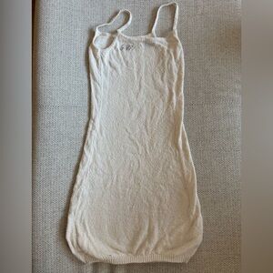 Beachy, textured cotton dress. Lightweight knit, tank style with a scooped front and skinny straps. Embroidered Paloma Wool logo at the back.