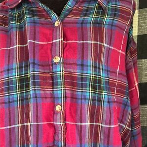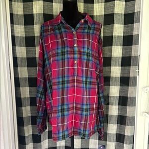 Chaps Red and Blue Plaid Casual Button Down Shirt E