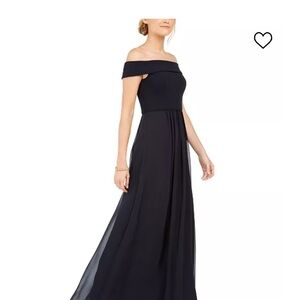 Elegant off-shoulder style. Graceful maxi silhouette. Ideal for formal occasions. Can be altered for tea length or shorter wore once to a wedding. Fits like a size 12-14