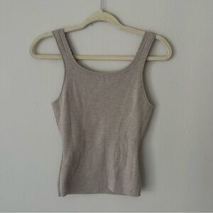 & OTHER STORIES Scalloped Knit Wool Button Tank Top Tan XS
