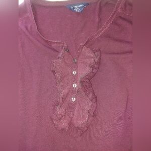 Ralph Lauren Ruffled Burgundy Long Sleeve Top